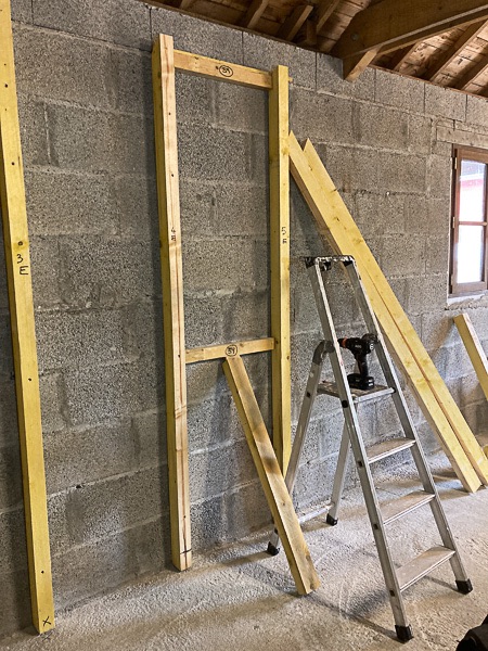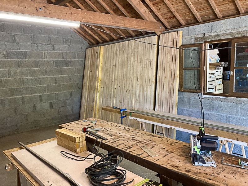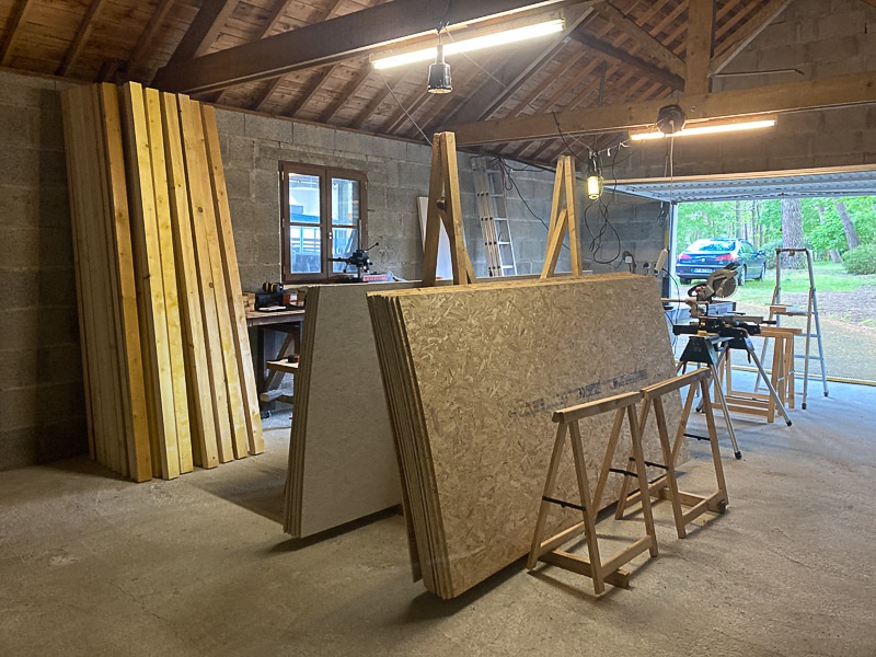 - découpe des montants 63x85 muraux et premières boulettes (c'est pas ma faute, c'est les travailleurs détachés qu'ont merdé!) #mauvaisefoimaispasque