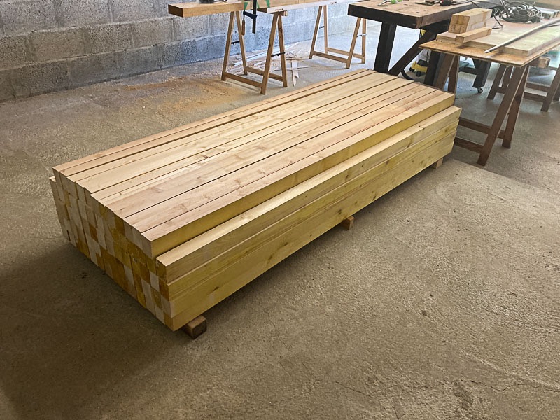 Ben oui parce qu'avant de poser l'ossature il y a quand-même quelques bons gros bastaings à couper/refendre. Allez au boulot