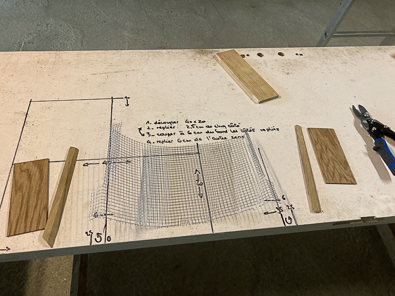 - réflexion/tests/découpes en série/mise en place d'un grillage anti-rongeur (20mL) où comment temps et argent sont inversement proportionnels