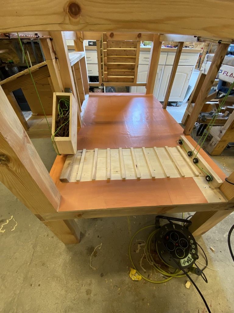 Enfin J'ai fermé un des 3 nichoirs pour le stockage des graines ou autres foins : et j'ai changé l'éclairage.