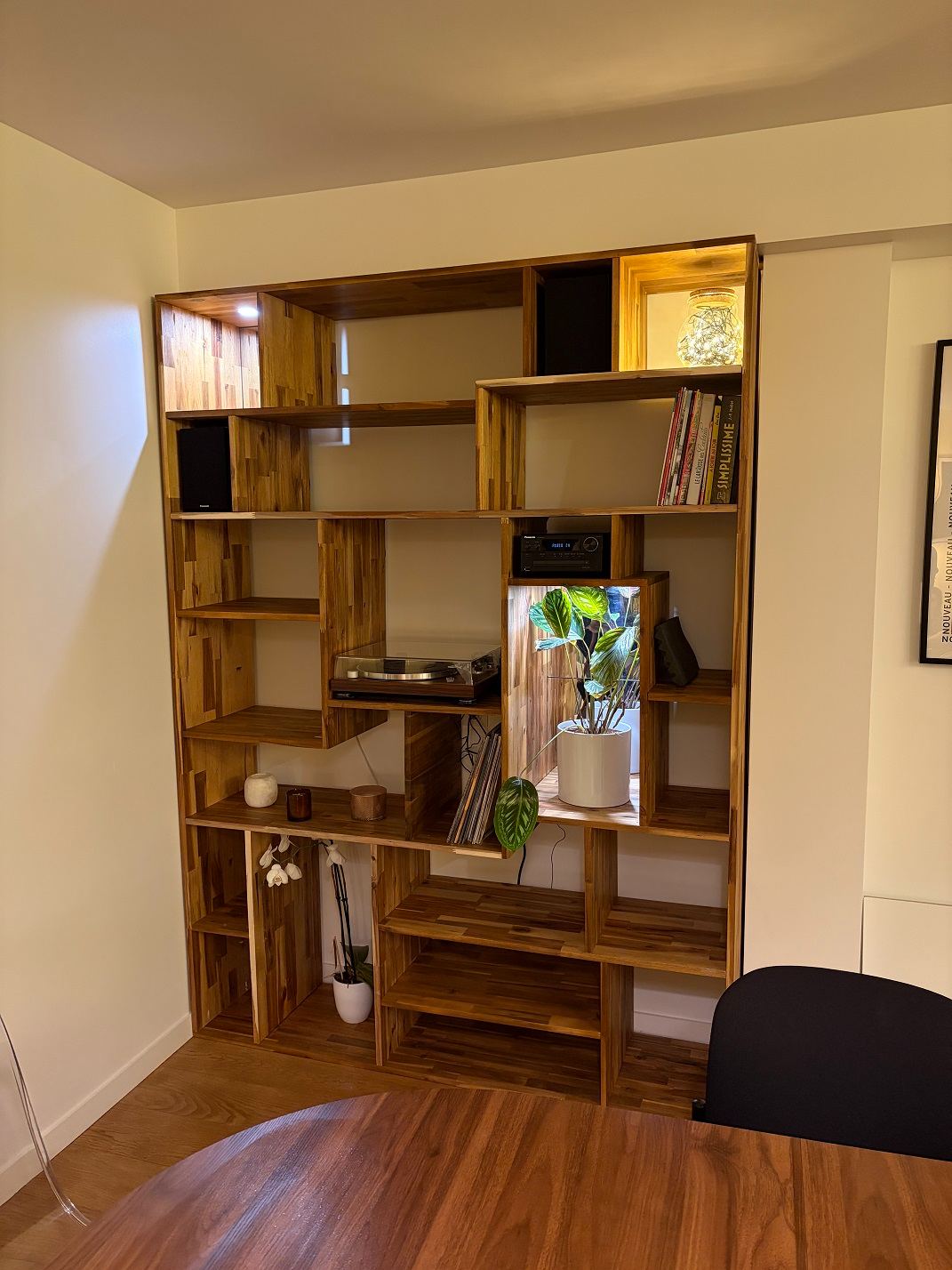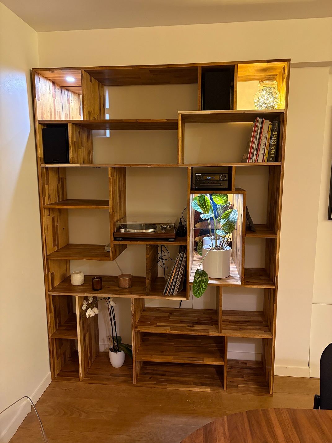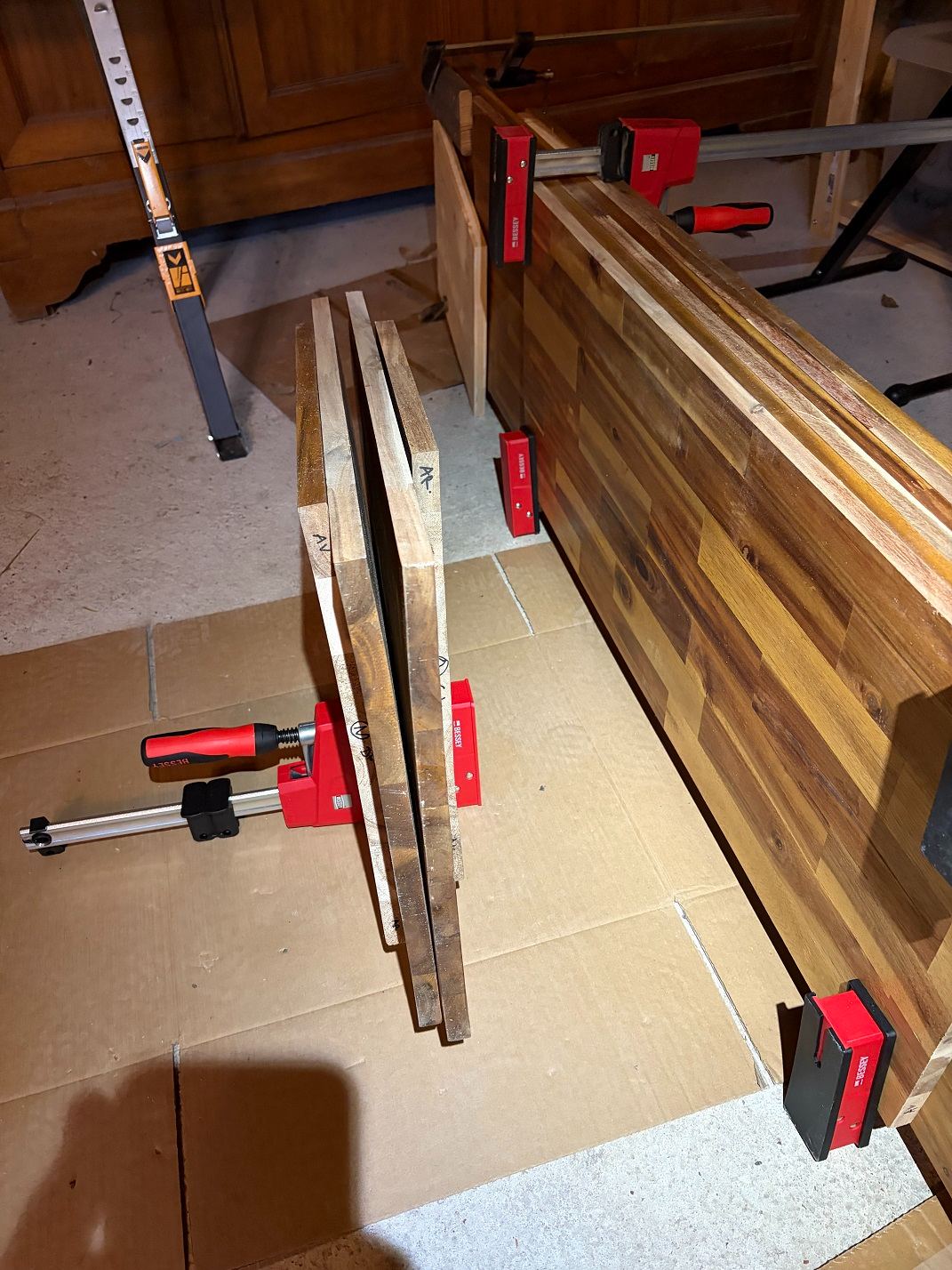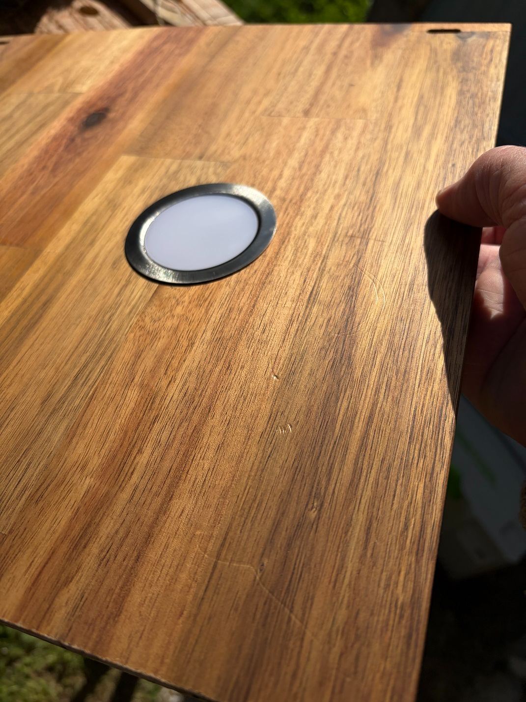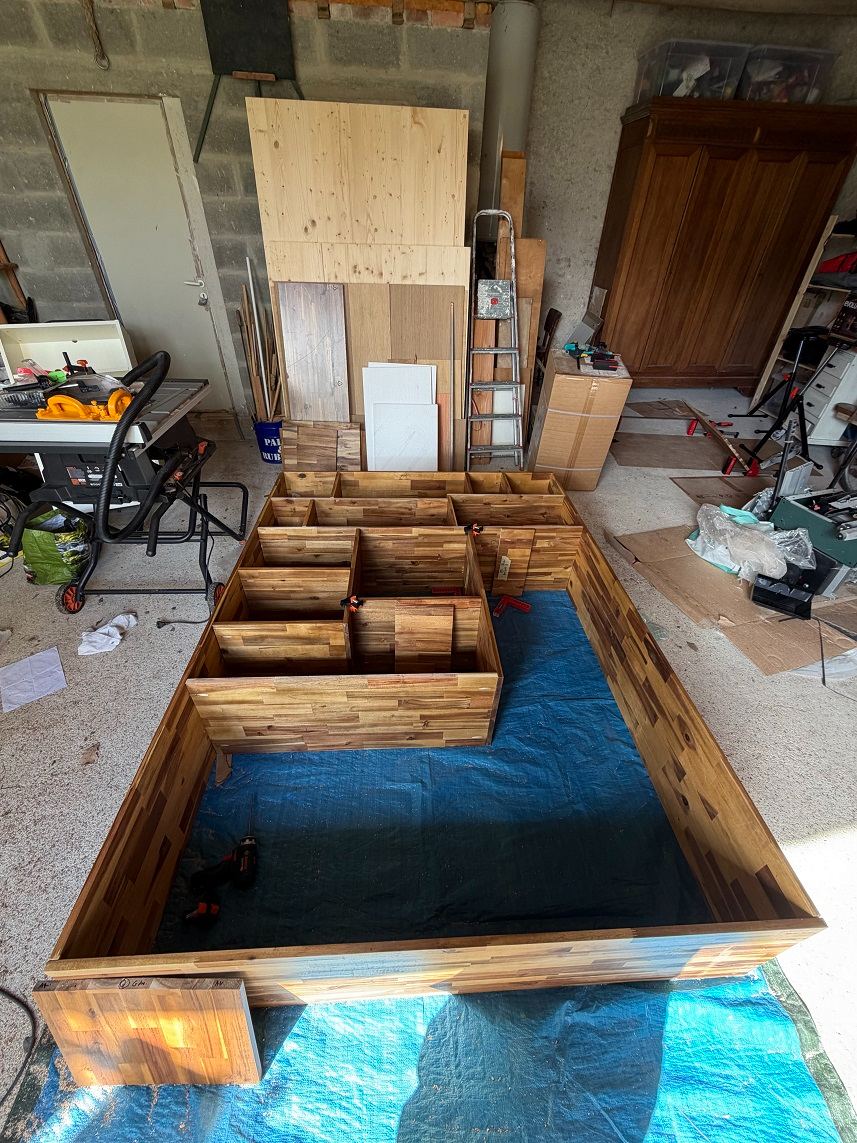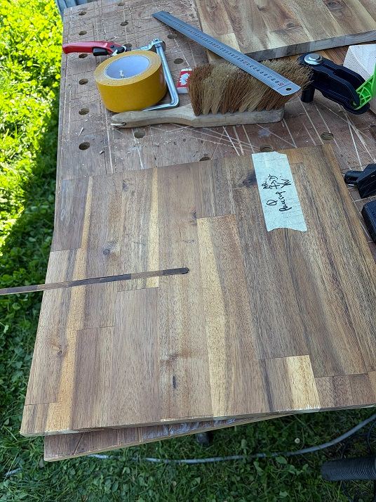 - Le plan horizontal passant par l’axe du porte fers et le plan de la table d’insertion ne sont pas parfaitement parallèles (quelques dixièmes d’écart sur 300 de large) et je n’ai pas trouvé le moyen de corriger ce léger défaut. Mais au final, je n’ai jamais eu de problème d’ajustement de mes assemblages.