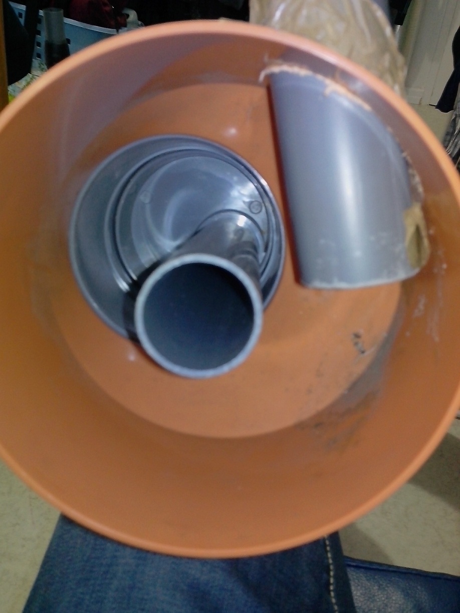 J'ai fait le mien avec un tube pvc de 100mm. Il marche pas mal a vide pour aspirer des poussières éparses mais dès que je le connecte a une machine qui forcément freine l'aspiration le cyclone ne fonctionne plus. Des idées d'où ça peut venir ? Il faut mettre une soupape ?