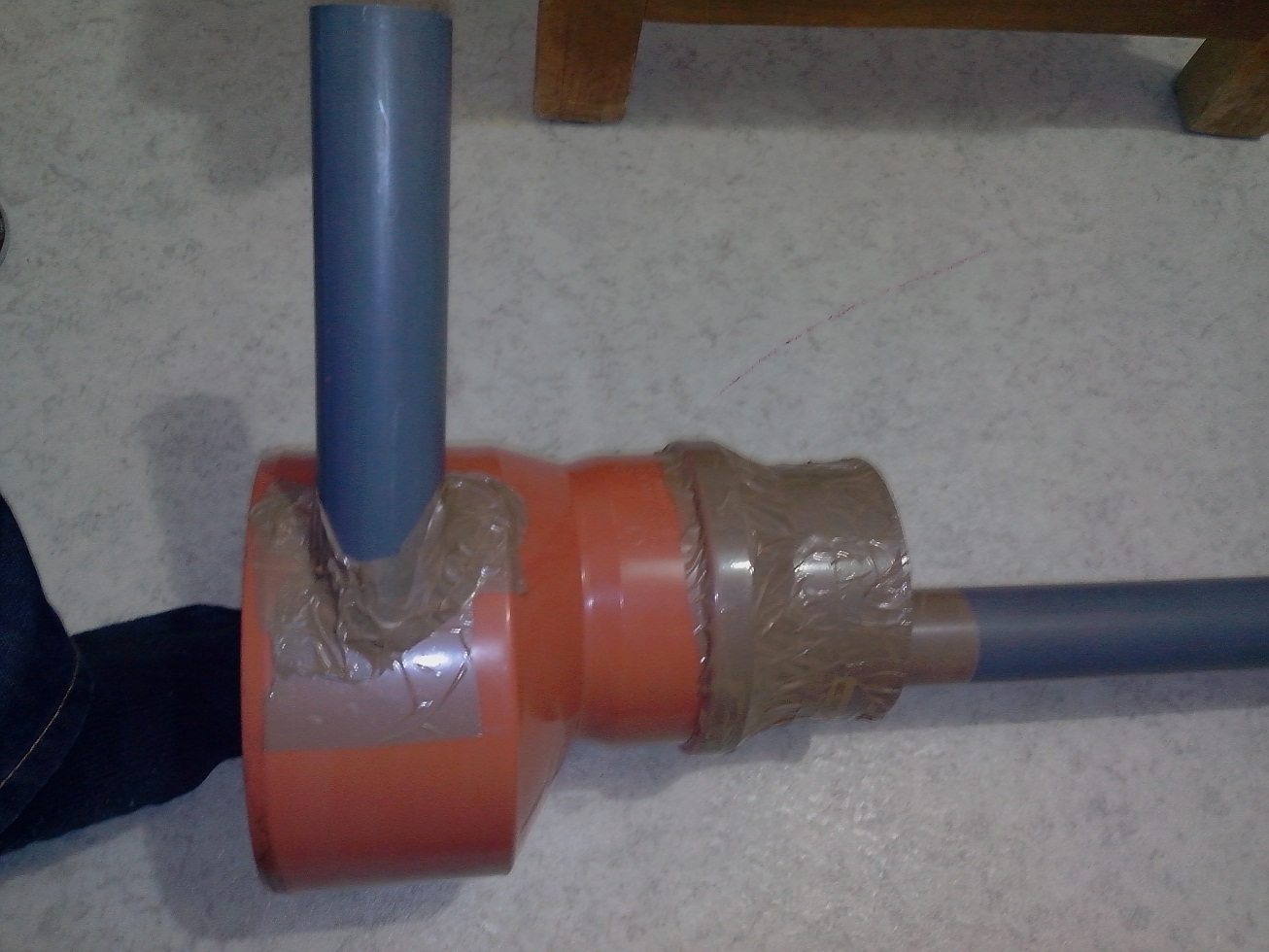 Au niveau du reducteur de diametre percer avec un scie cloche un trou tangentiel au tube sur le plus grand diametre.