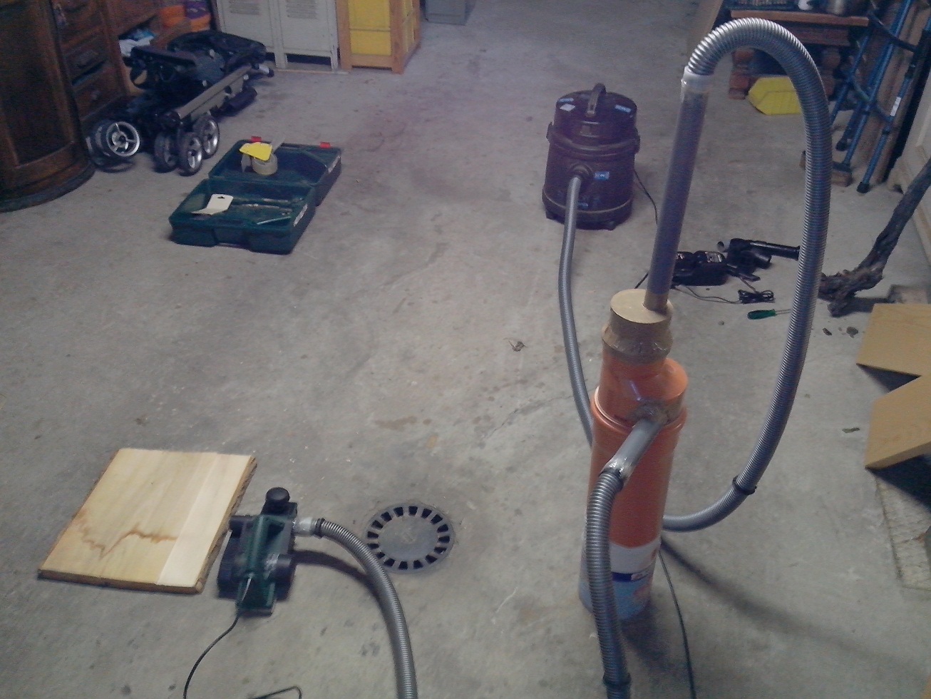 Là il est relié avec un tuyau de piscine, premier problème : ça siffle ! Mais quand je dis ça siffle, ça siffle mais carrément !! J'ai perdu une oreille et demi, mais le test relié à l'aspiro domestique marche nickel, y compris avec du super fin, et du premier coup :mrgreen: