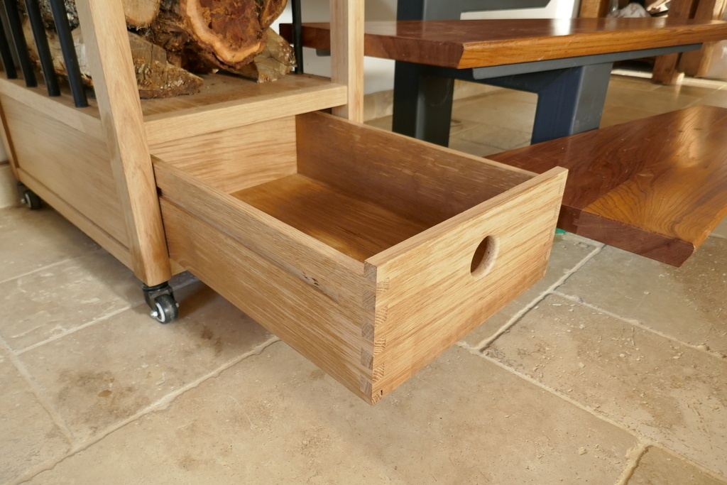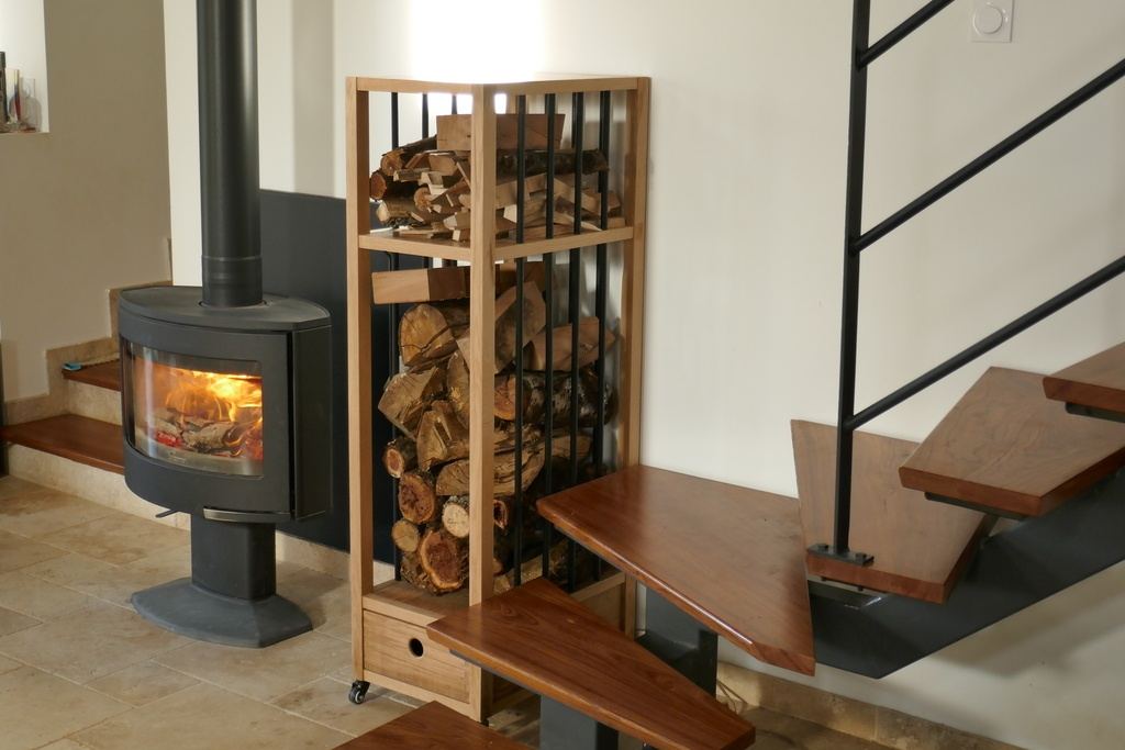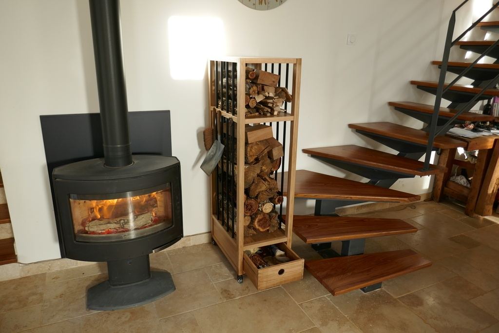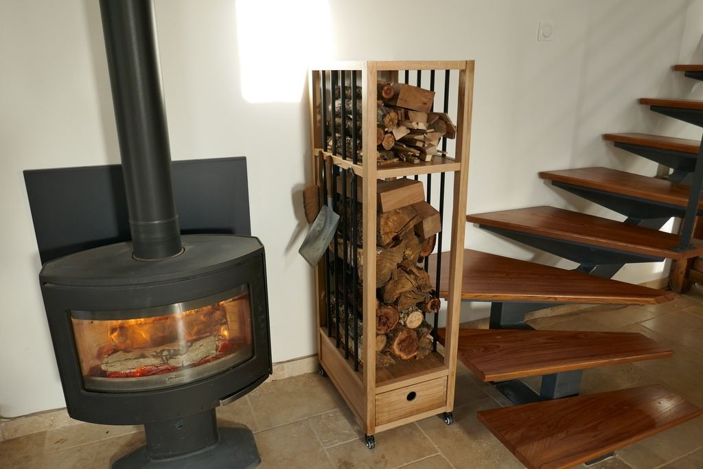 Un petit meuble pour ranger les bûches de chauffage, le petit bois et les accessoires nécessaire au poêle.