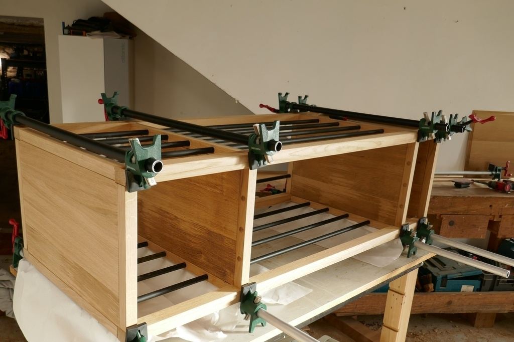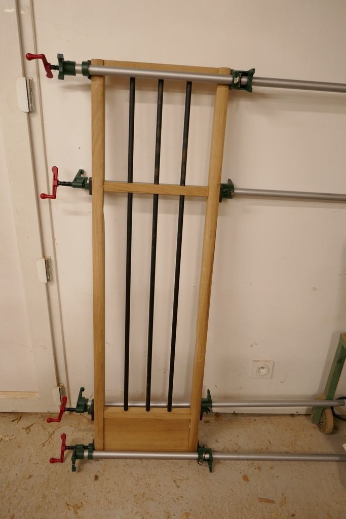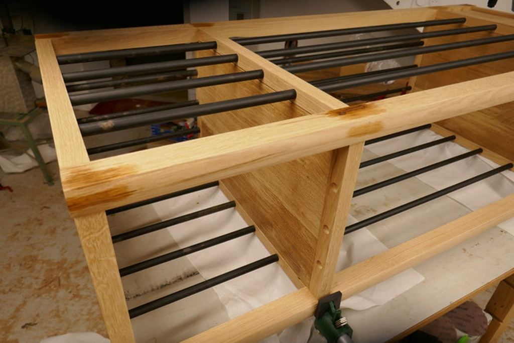 Réalisation en chêne et tubes recyclés d'un vieux meuble à chaussure que je m'étais gardé de côté depuis plusieurs années en supposant en faire quelque chose.