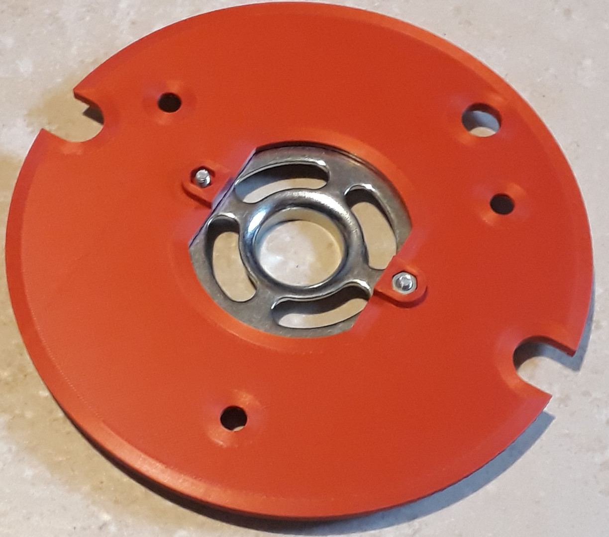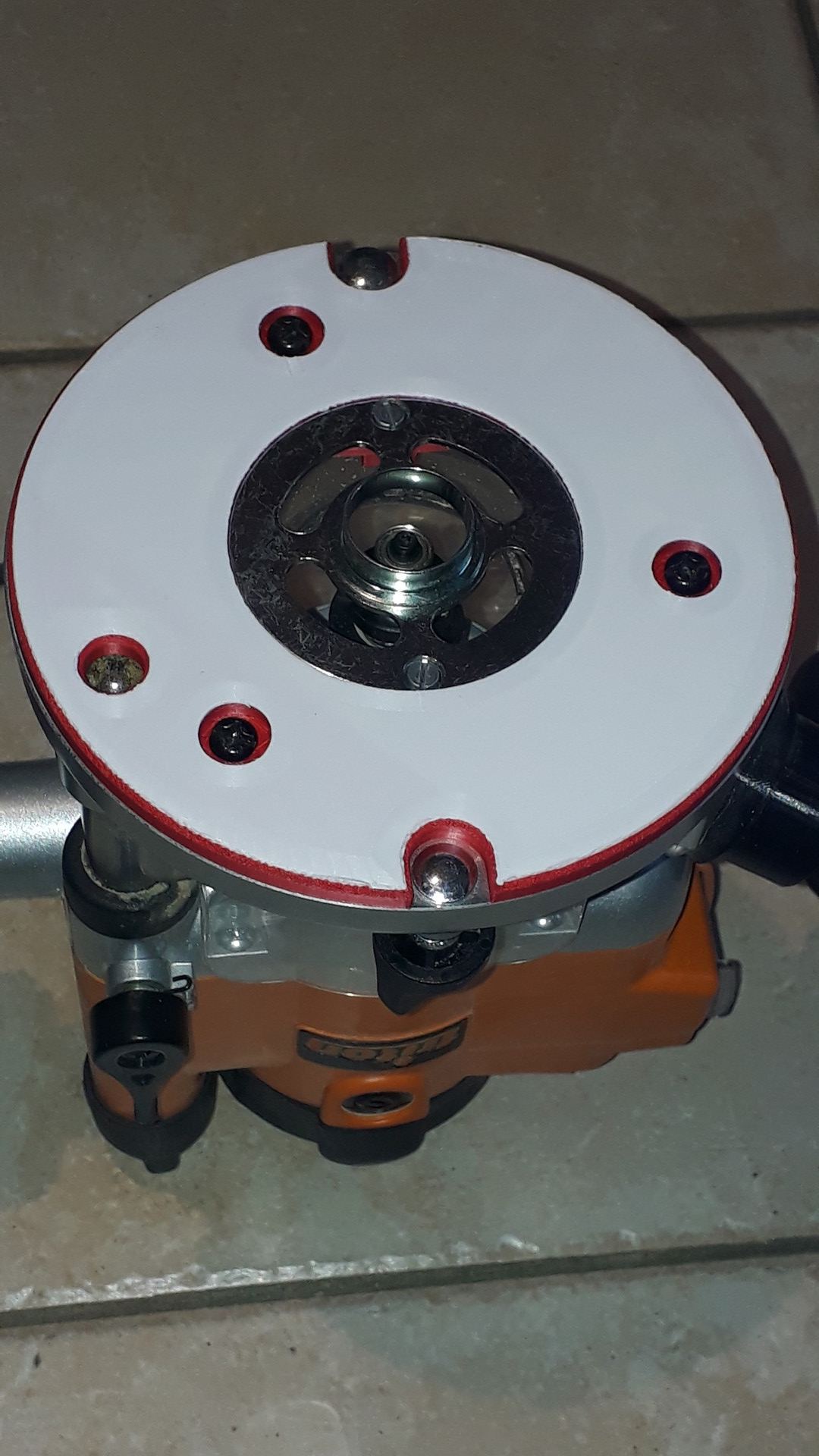 Tout ça pour dire que c'est à mon tour de partager: je viens de fabriquer en impression 3D une nouvelle semelle pour ma défonceuse Triton JOF001, afin de pouvoir maintenant installer des bagues de copiage Festool, qui sont relativement économique, et surtout facilement disponibles en dimensions métriques. J'ai mis les photos et STL à dispo sur Thingiverse ici : https://www.thingiverse.com/thing:5155304