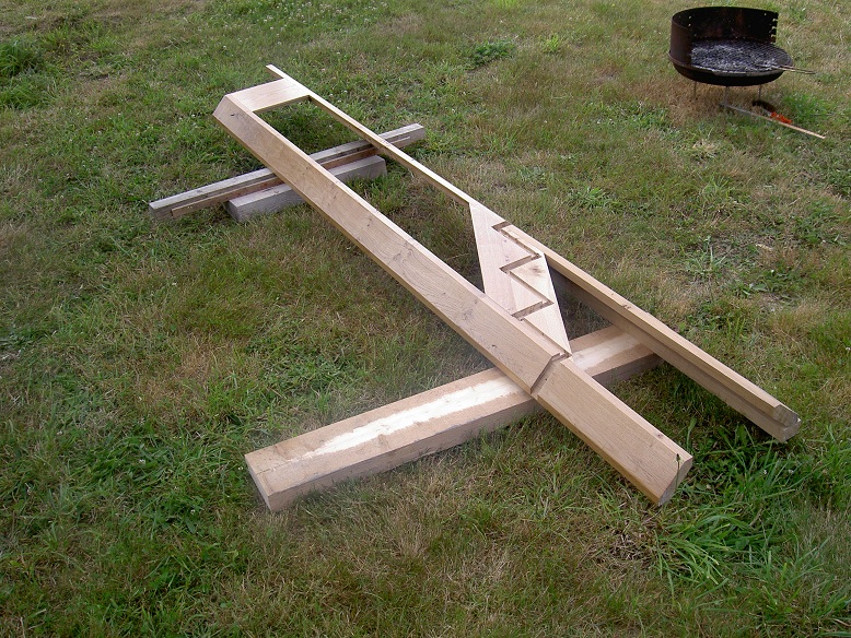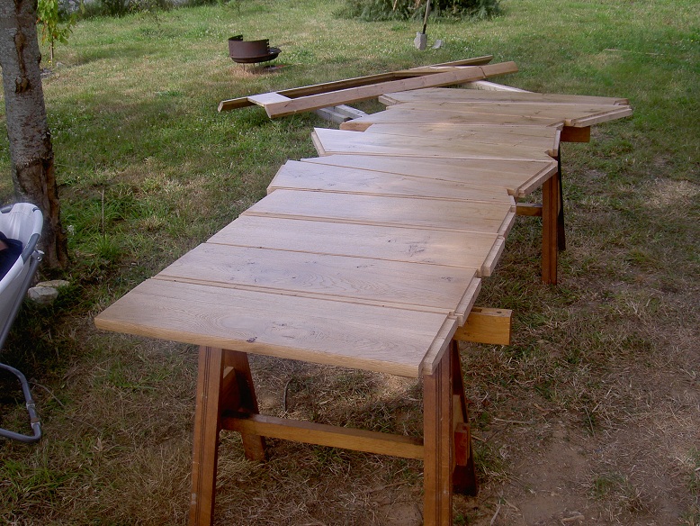 J'ai retrouvé les photos d'une table, faite avec du bois d'échafaudage restant du chantier de la maison, et du chêne récupéré du plateau d'un vieux meuble qui servait d'établi.