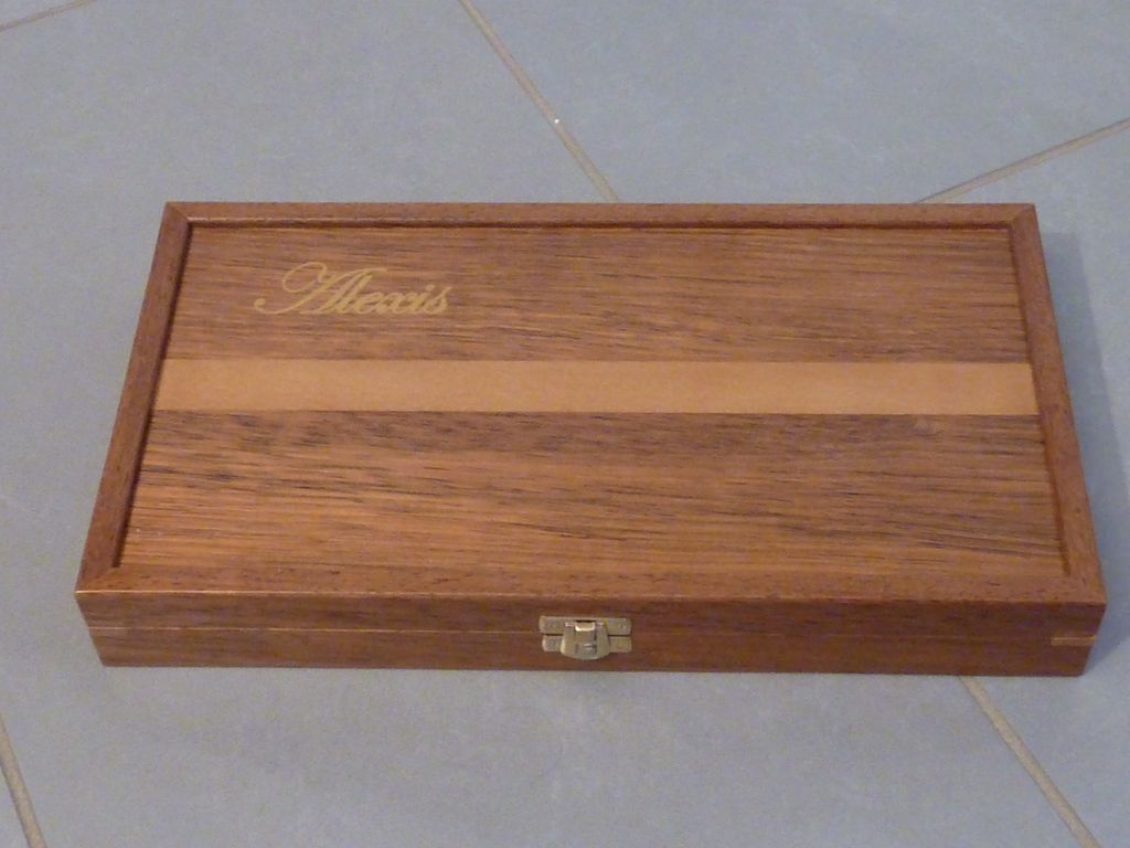 Elle est en merbau (reste de mon parquet de maison) et en hêtre, l’intérieur est une plaque de médium de 10mm.