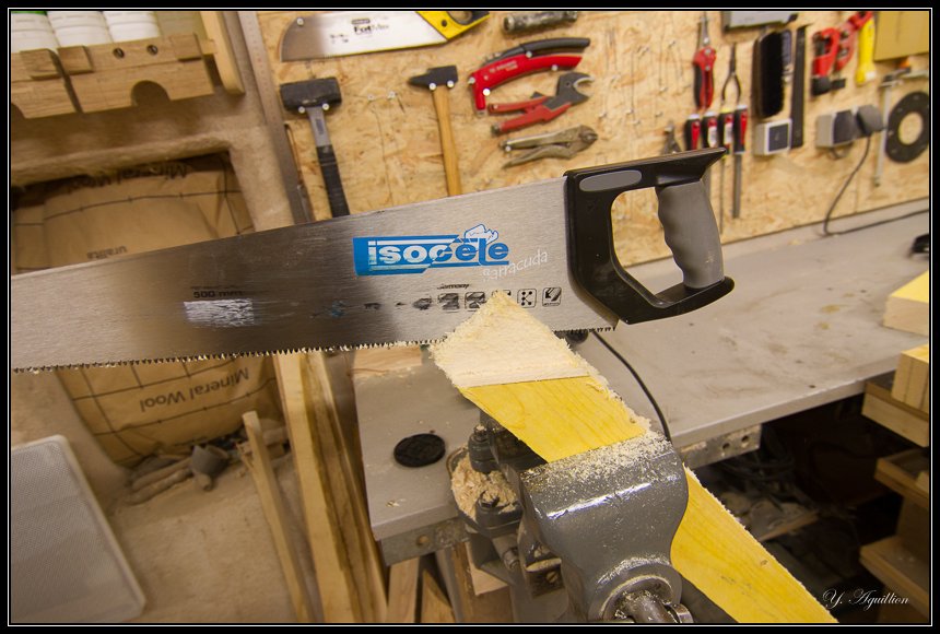 J'ai réalisé les épaulement à la scie circulaire :
