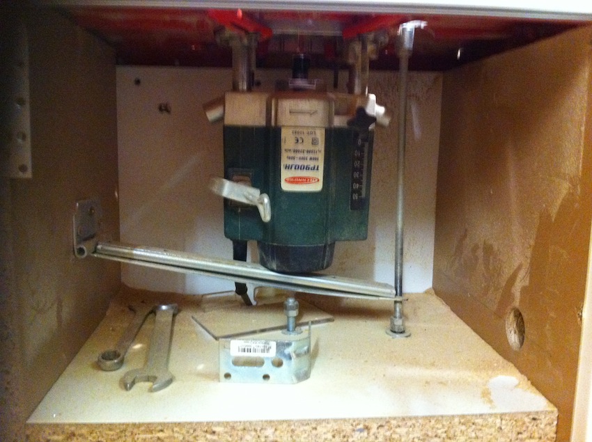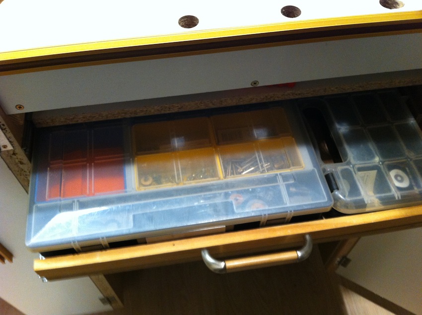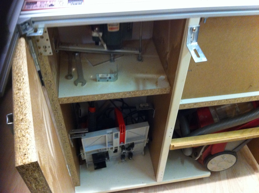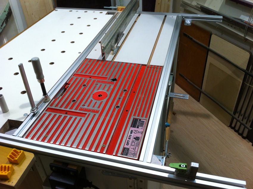 Je souhaitais installé en fixe une scie circulaire portative bosch hauteur de coupe 55mm et une défonceuse basique que j'avais achetée moins de 50 euros il y a quelques années. J'avais aussi une petite table pour défonceuse en alu achetée aussi 50 euros de mémoire, et un vieil aspirateur ménager sans sac que je voulais intégrer pour les sciures.