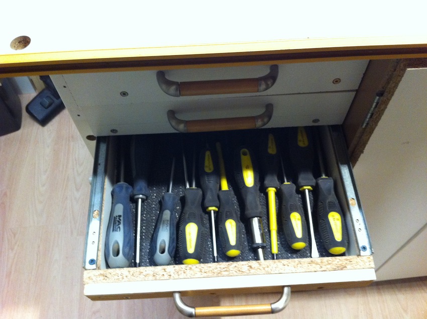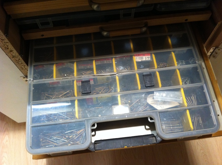 des charnières, glissières tiroir de récupération, des vis boulons et rondelles