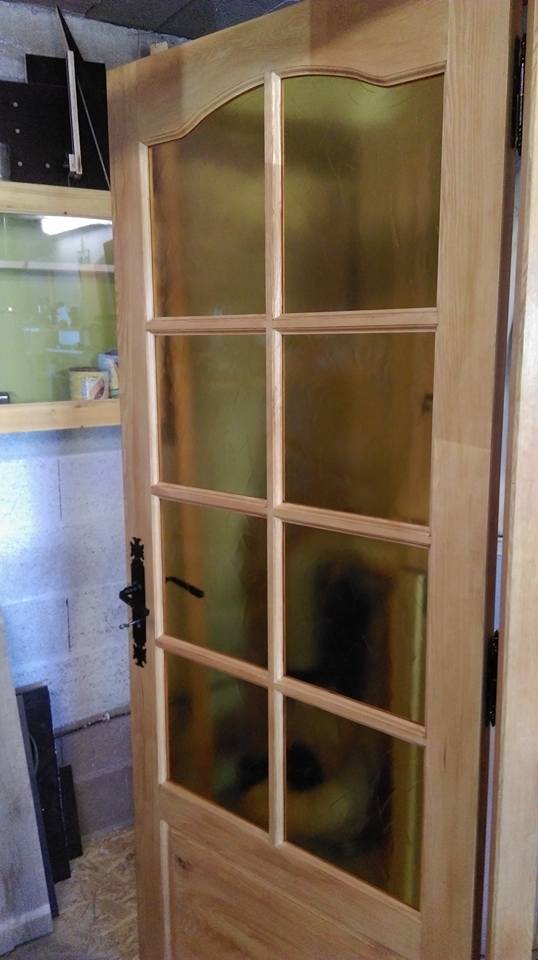 aujourd'hui fabrication du dormant et du panneau bas puis pose des paumelles et entaille pour la serrure .