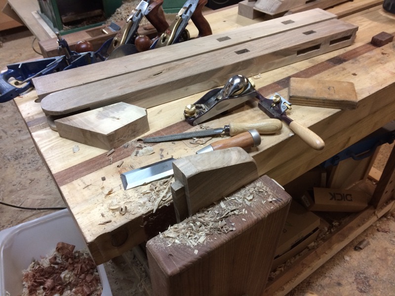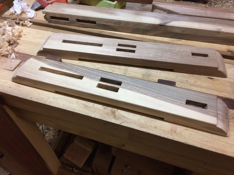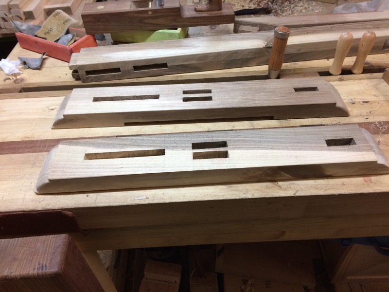 Je ne vais pas, comme le fais Tom Fidgen, débiter, dégauchir et raboter tout à la main. J'ai utiliser une scie circulaire et ma déglua-rabo pour ça. Pour le reste, pour le moment, j'ai quand même pas mal de boulot à la main, étant donné qu'il n'y a pas vraiment d'usinage en série et que sans scie à ruban certaine coupe ne peuvent se faire autrement (la Kity 617 est limitée, mais la mortaiseuse à bédane a bien tourné).