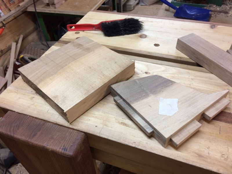 Je prépare rapidement le collage de la jambe en noyer, rien de bien particulier, et comme l'ensemble n'est pas très encombrant, je vais le mettre à sécher au chaud.