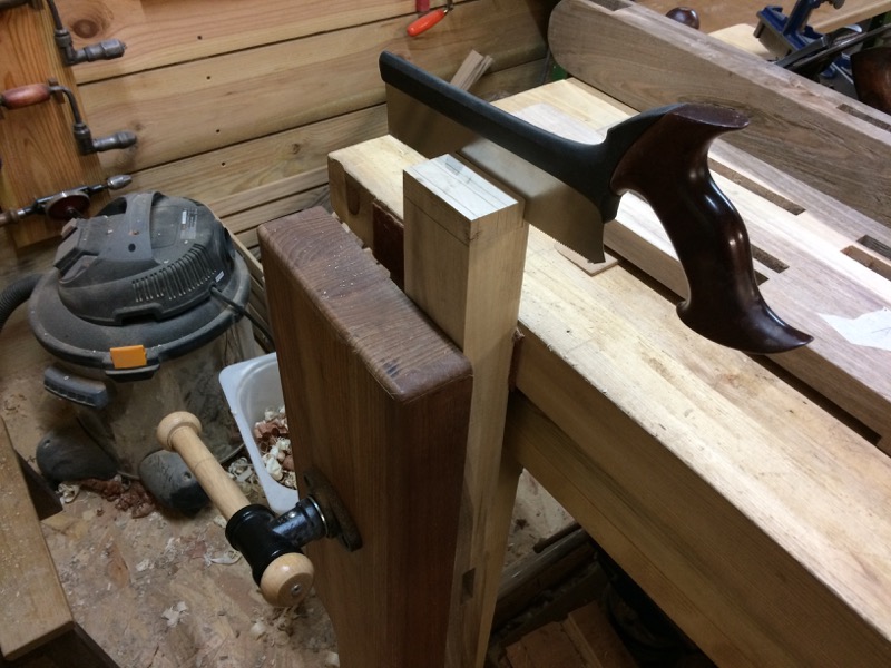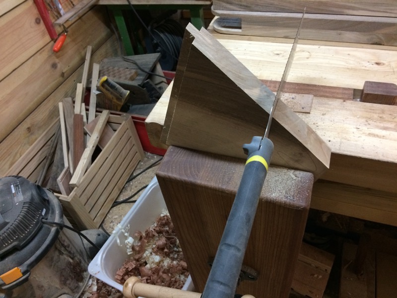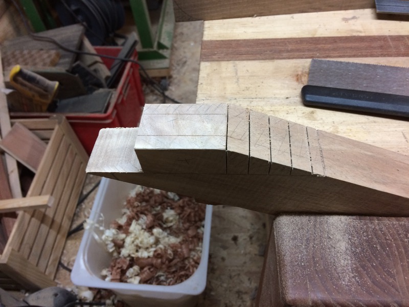 15- Découpe des épaulements la scie, ensuite j'ai dégagé la partie centrale au ciseau à bois