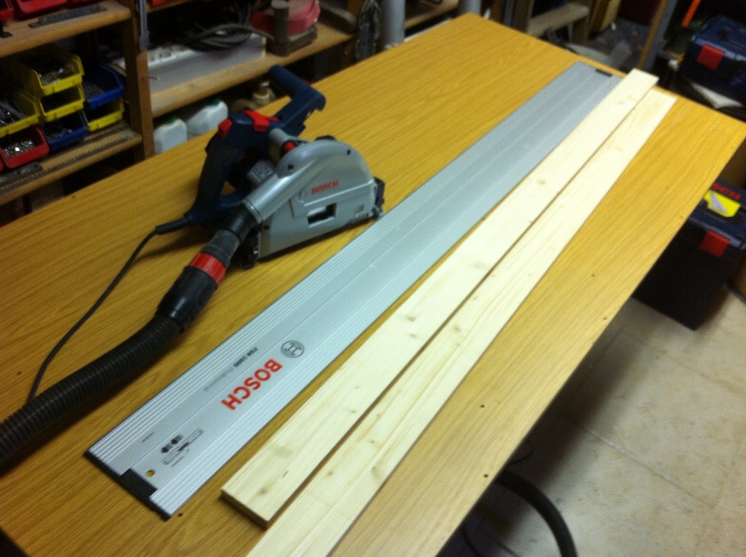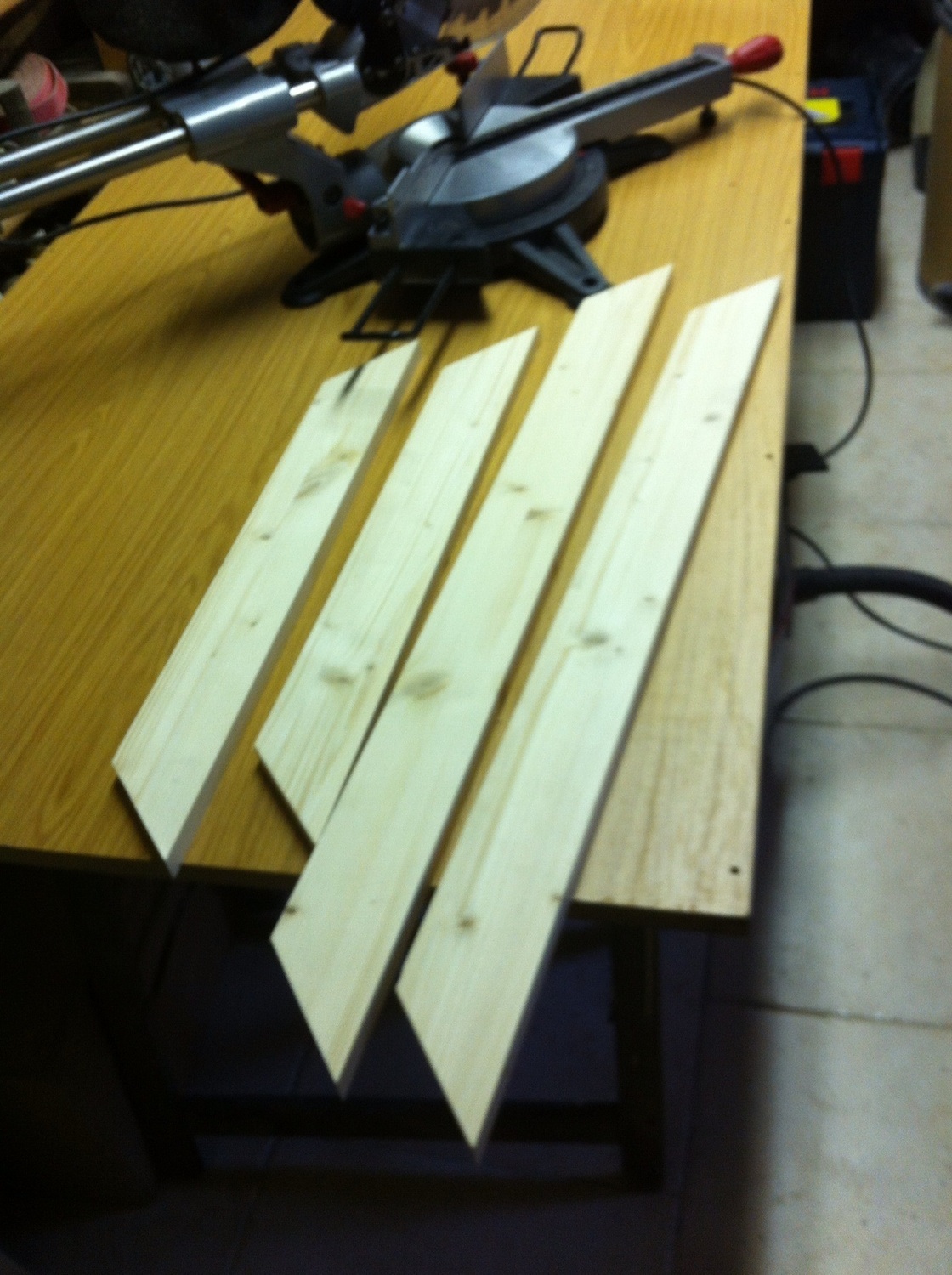 A mon avis la coupe a été effectué avec la scie radiale à onglet prise en photo un peu plus haut.