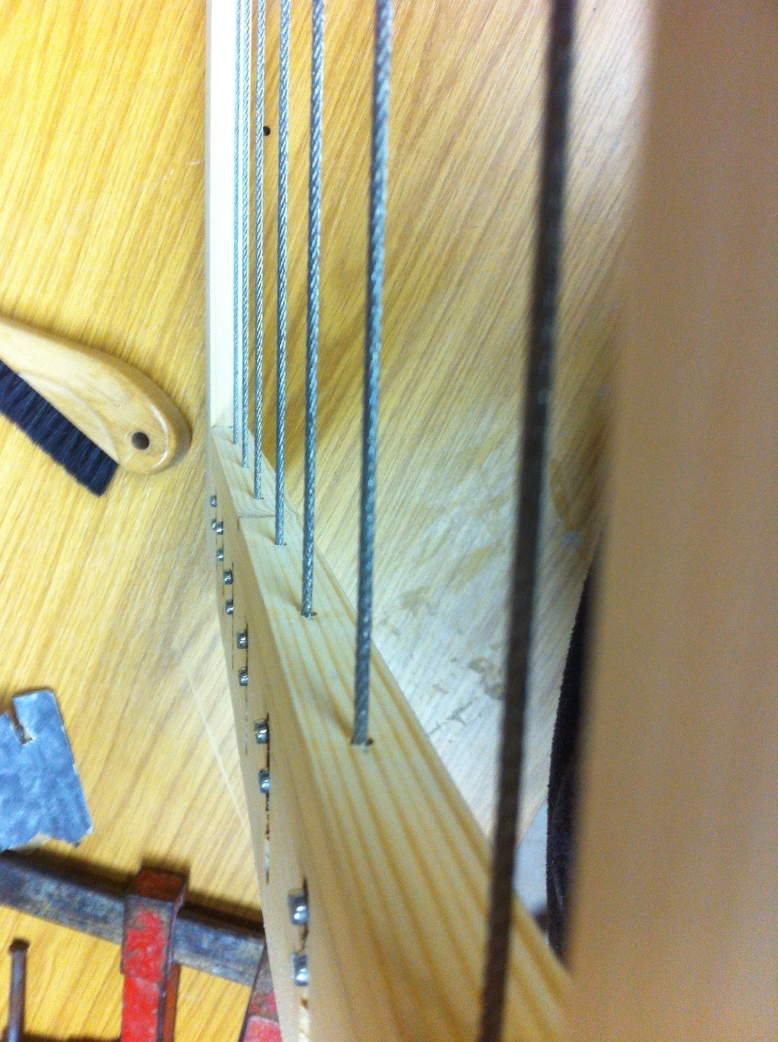 j'aime beaucoup ce cadre mais j'ai un question, as-tu une technique particulière pour tendre les cables. j'ai bien compris comment il était fixé au bois mais j'imagine qu'il faut une certaine tension.