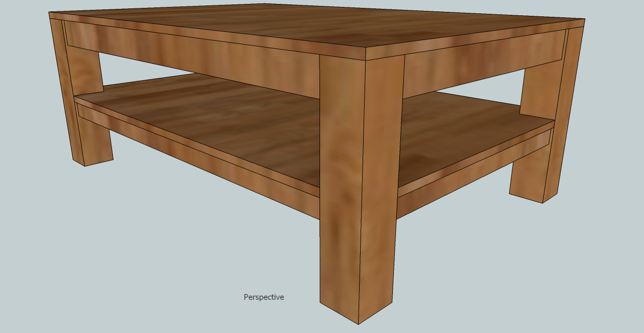 Vu que l'actuelle est très pratique, je me suis contenté de reprendre ses dimensions, en ajoutant des traverses sous le plateau et en augmentant la taille des pieds pour l'esthétique et la solidité.