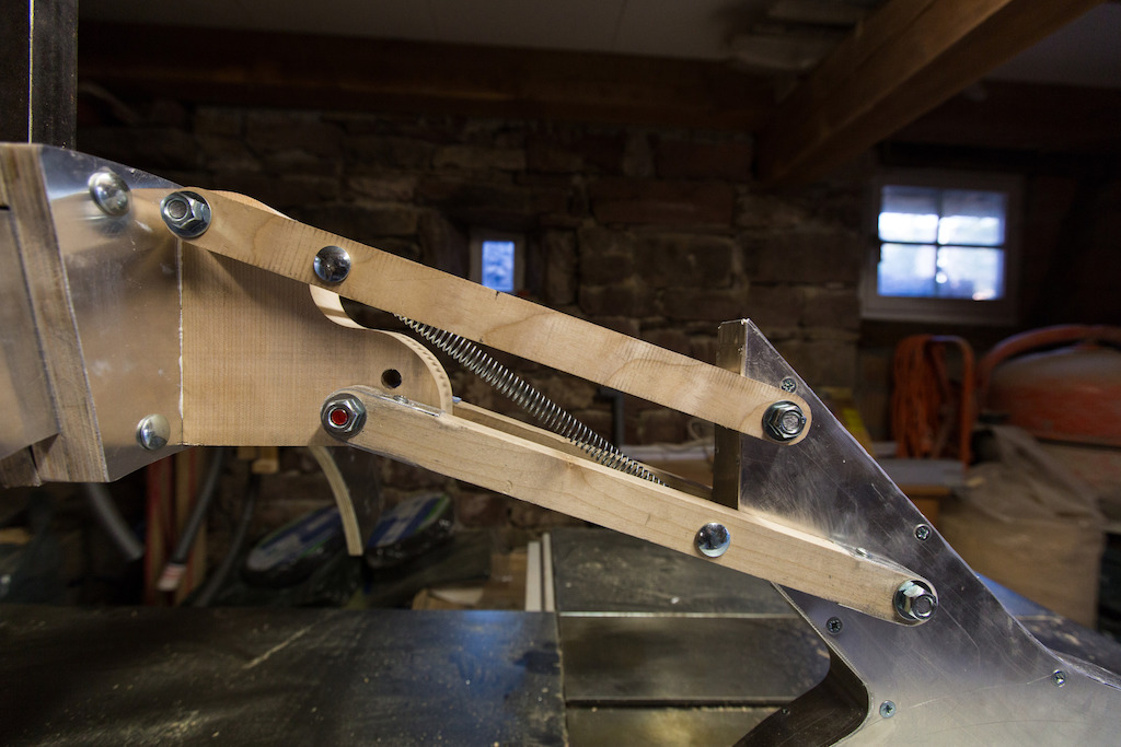 Mon vieux combiné n'a pas de cape de scie, c'est un risque que je veux éliminer. Mon idée serait de prendre une feuille de plastique thermoformable, de la plier au sèche-cheveux puis de découper cette gouttière à la forme désirée.