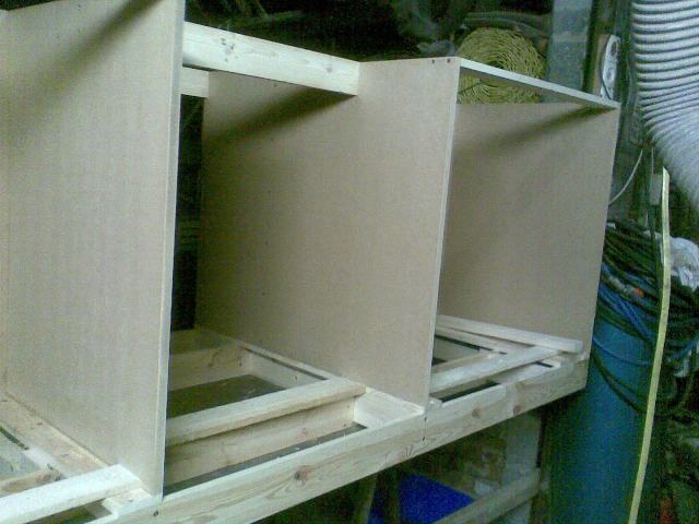 Les tiroirs (en cours de réalisation) seront placé des deux cotés et fait a partir de panneaux de meuble de récupération,