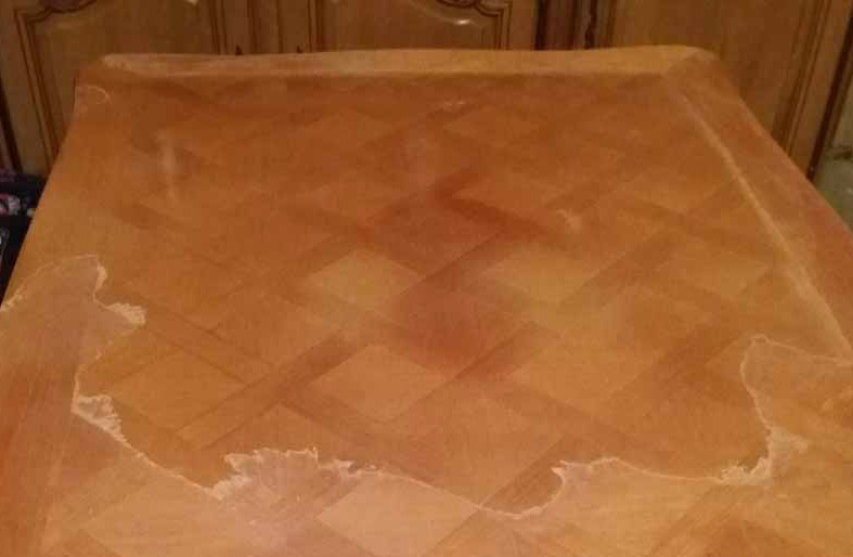 Rénovation table marquetée en merisier