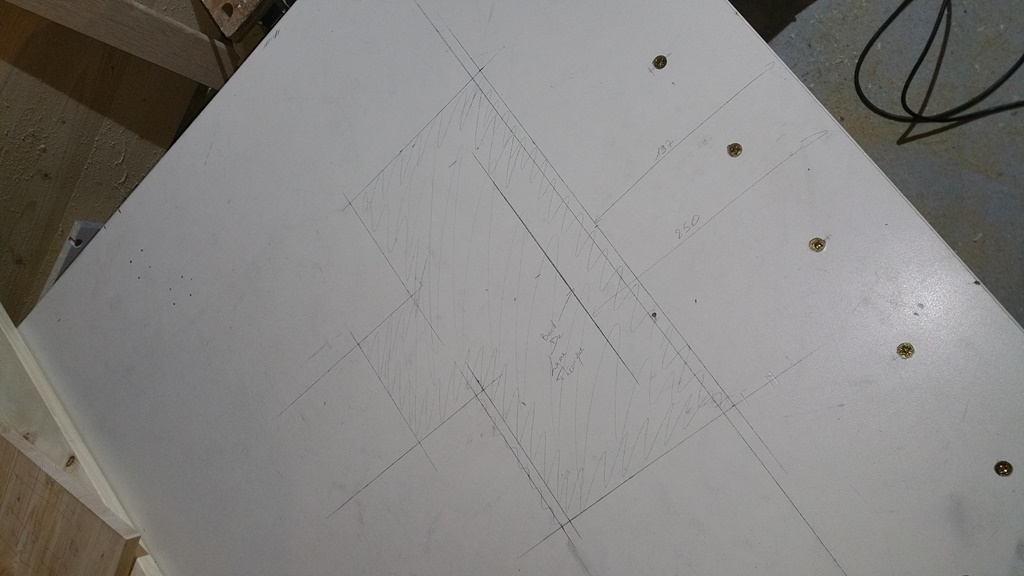 Une fois fait, avec essai de positionnement du chariot, j'ai pu tracer l'ouverture dans laquelle la circulaire passera.