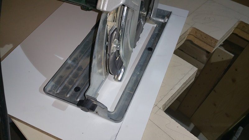 Dans l'idée, cette ouverture sera recouverte par une semelle en CP, épaisseur à définir, qui supportera la circulaire (fixée par 3 vis TF métrique avec écrou côté circulaire) et qui sera encastrée dans mon plateau à la surface.