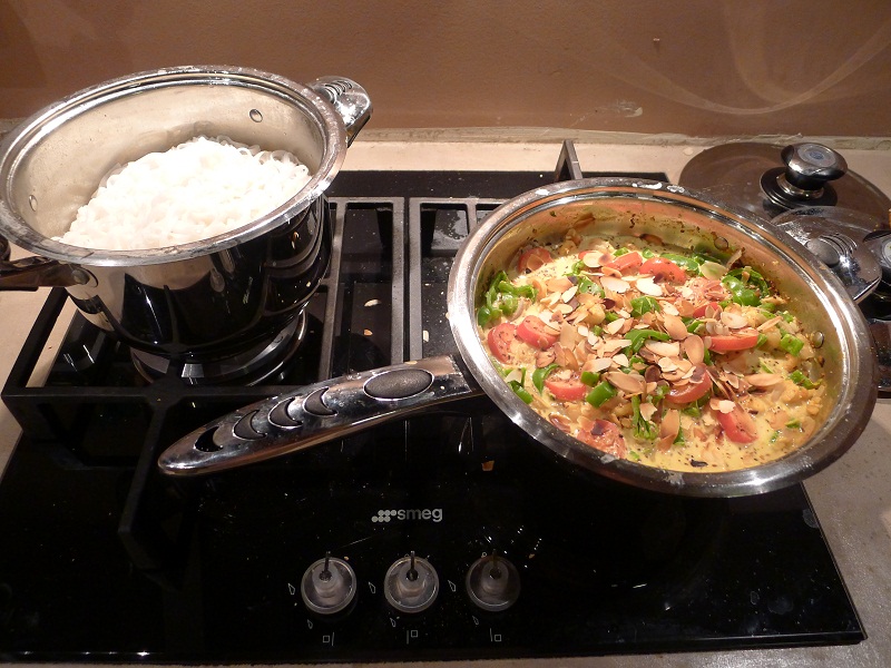 Alors inauguration avec tagliatelle de riz et crevettes au coco