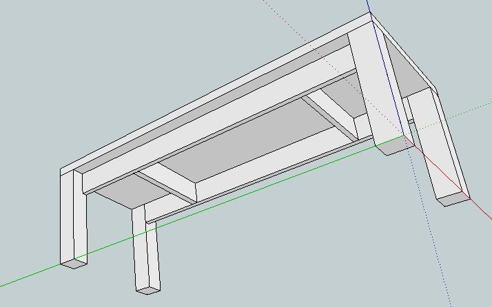 Si tu regardes des photos de tables, beaucoup d'entre elles ne possèdent qu'une ceinture haute pour les rigidifier. Dans les cas de la structure dessinée ci-dessus, le fait de déplacer une traverse vers l'intérieur affaibli un peu l'ensemble. En effet c'est la résistance en torsion des traverses longues qui va maintenir les pied verticaux. Je ne pense pas que ceci soit un pb si tu garde une section confortable et si su fais des assemblages soignés.