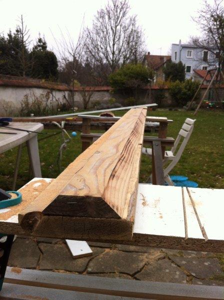 aujourd'hui j'ai mis la main sur deux planches de coffrage qui feront l'affaire pour le prototype d'un des pieds du banc ou de la table, ce sont les mêmes...