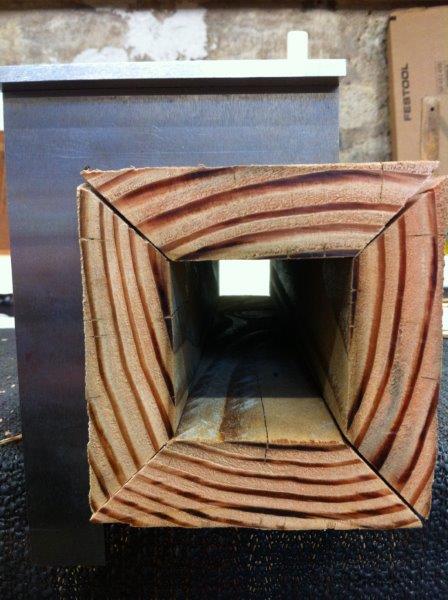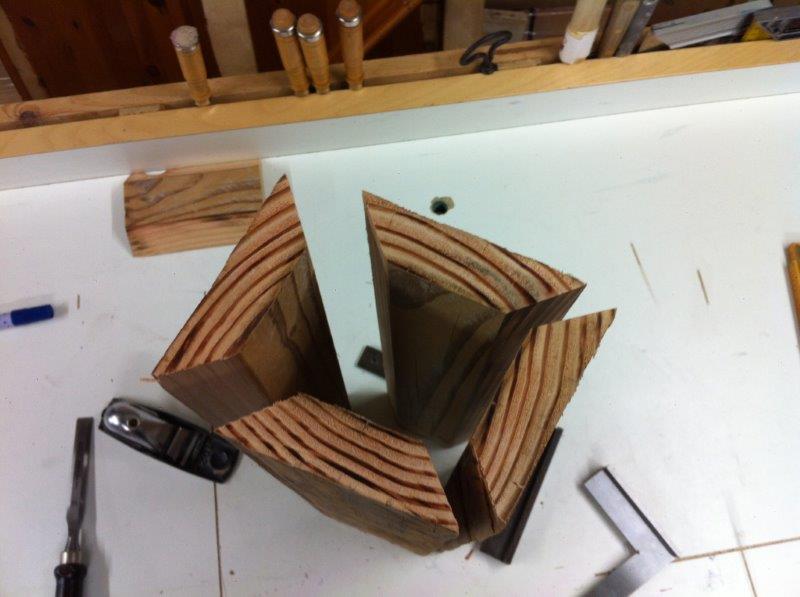 Les joints vont s'ouvrir dans le temps même en étant juste dans l'assemblage. Tu peux récupérer le truc en réalisant un poteau classique avec ton bois. Les chants seront visibles mais l'ensemble restera à peu près identique à ton projet Si tu optes pour ma solution, marque les joints au lieu de venir à fleur du montant vu de face. La colle adaptée au montage extérieur est une colle P.U.(cochonnerie pour les mains car elle laisse des traces noires pendant plusieurs jours). N'oublie pas