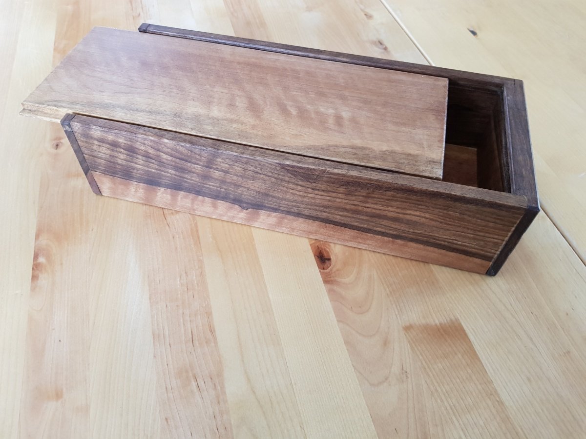 Quant à ta boite, simple mais bien faite, je l'aurais bien passée à l'eau oxygénée, histoire de la rendre plus homogène entre l'aubier et le coeur, et plus claire donc plus douce, pour une fille.............. là, ça tranche trop brutal.