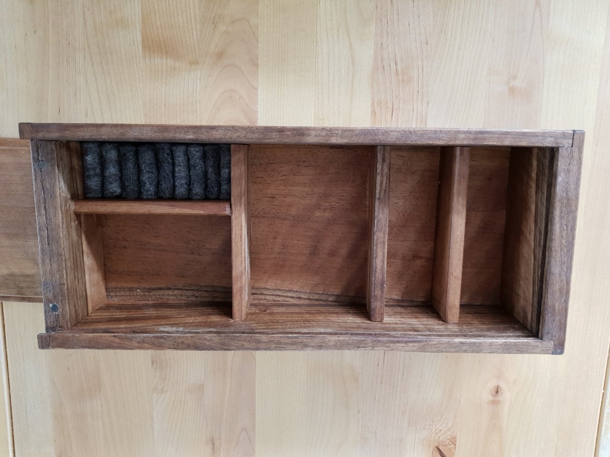 Verdict j'apprécie la lenteur imposée par l'approche, le rabottage c'est bien physique surtout quand on est mal réglé, et j'aime ce bois. Je suis sous le charme également de la précision du petit bouvet. Je vais donc pouvoir me lancer dans un plus gros ouvrage toujours dans les tiroirs