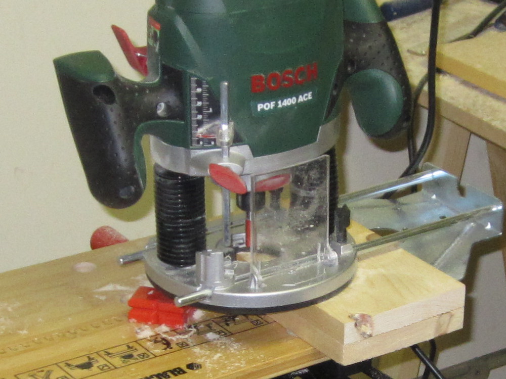J'ai placé une mèche à bois dans ma défonceuse pour me servir de la pointe de la mèche comme repère pour le centrage.