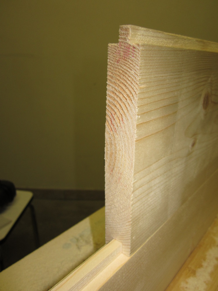 En fait, en bout de planche, les cotes ne sont pas respectées, la planche y est 1.5mm moins haute et 0.5mm moins épaisse. Mais bon, vu ce que j'ai payé je ne vais pas me plaindre... de trop ^^ (En même temps, ça reste cher il me semble pour du Pin, mais près de 3 fois moins que du bois pré-découpé, qui est de plus juste infâme)