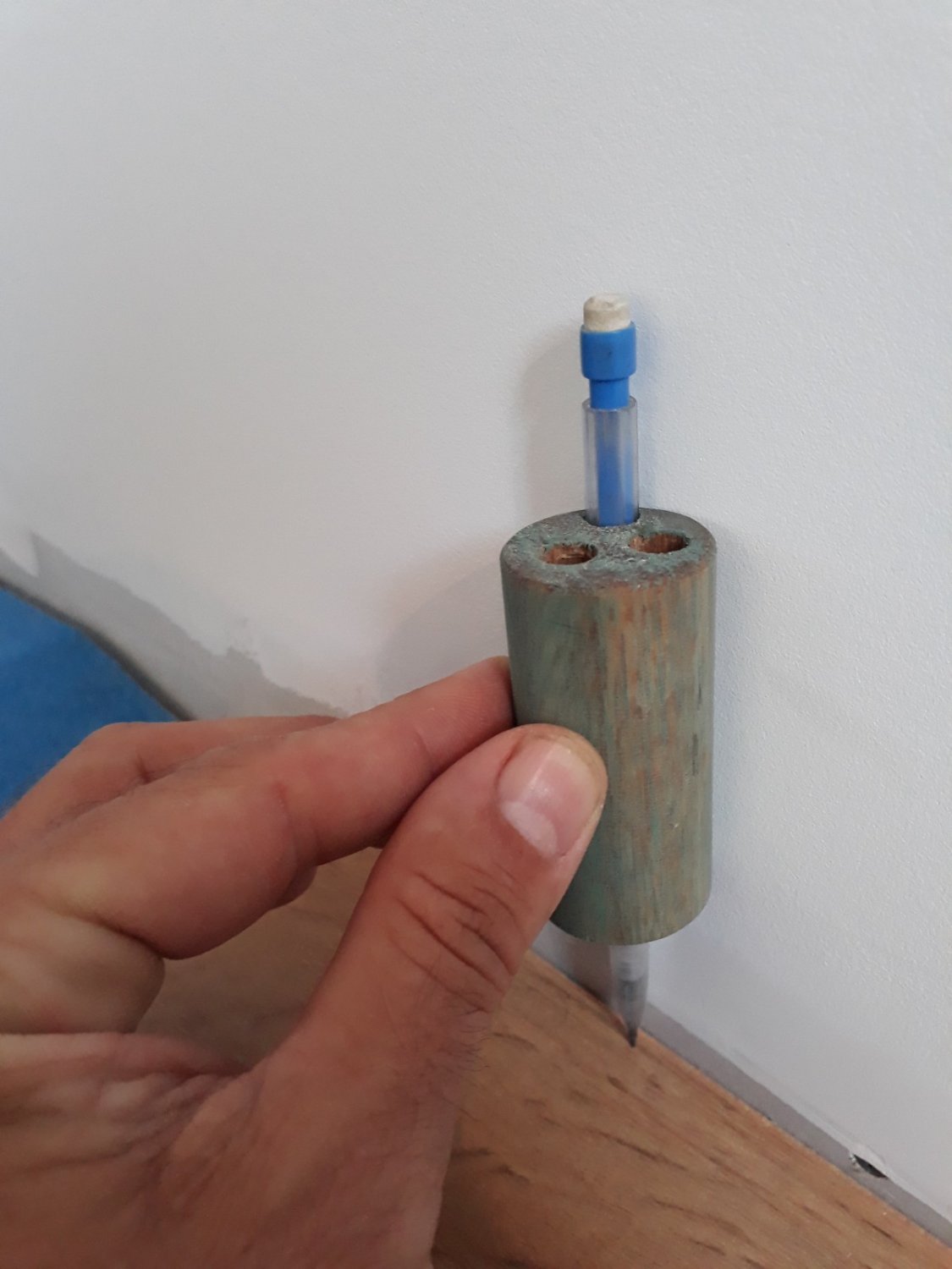 Salut les gens. Vitz fait et apres avoir fait le tour du net sans etre convaincu, voici ce qui me sert quotidiennement pour tabletter /trainer toutes sortes de trucs. 3 trous du diametre de mon crayon dans un bout de manche... micro ajustement en faisant tourner un peu loutil et en etant pas dequerre...meme si ca decale un poil en theorie la forme a copier...