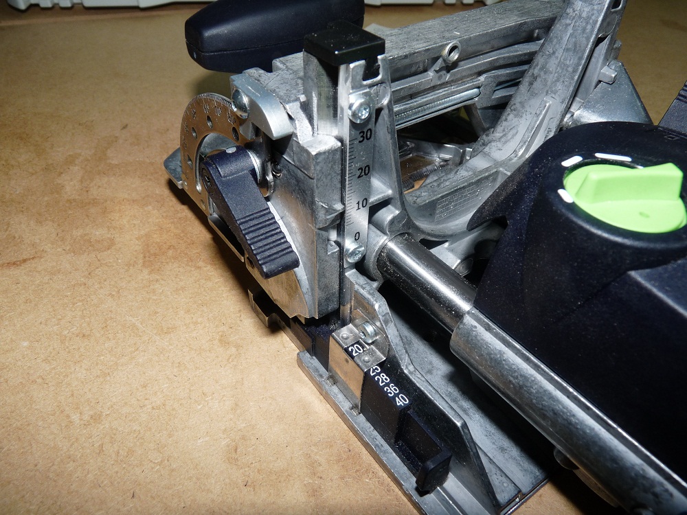 On centre sa mortaise en fonction de la section de bois soit par une butée préréglée de 12, 15, 20, 25, 28 mm ou alors on règle de façon libre sa hauteur jusqu'à 30mm. Pour des sections plus larges, on peut doubler les dominos ou les assembler de façon perpendiculaire à la tranche . 3.- L'angle de fraisage.