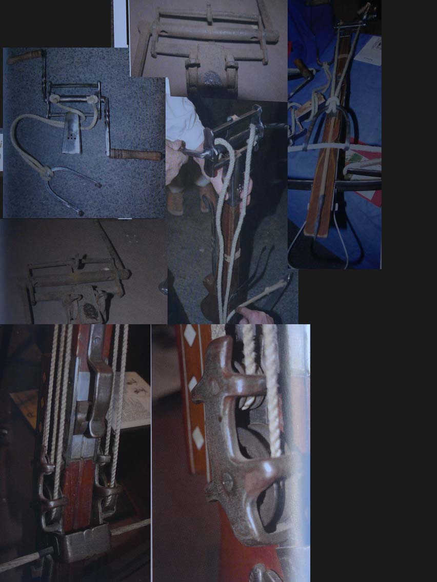 On trouve les poulies sur les répliques d'arbalètes anciennes