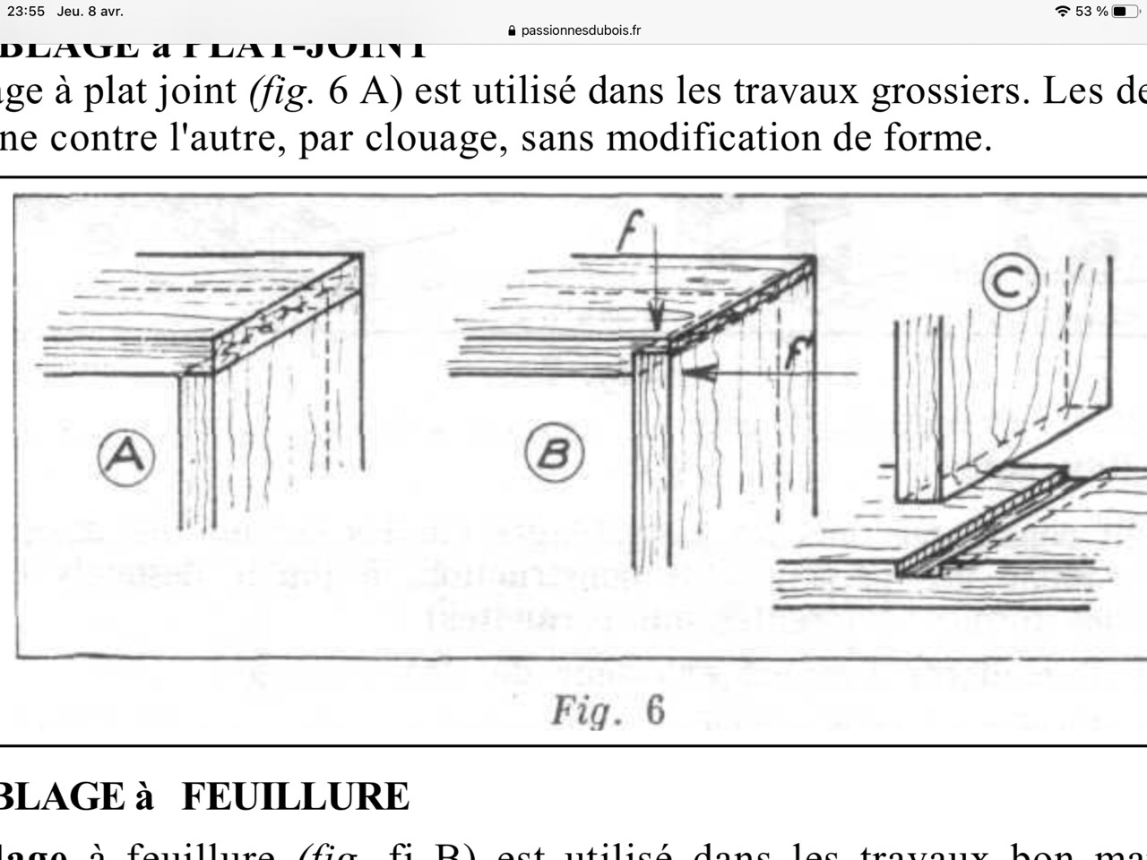 Ce type d’assemblage peut aussi bien être fait avec un feuilleret, un maillet, une scie et un ciseau à bois.
