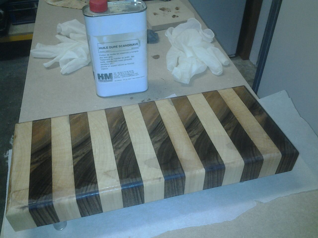 Voila ma dernière réalisation pour découper les saucissons! Noyer et érable.