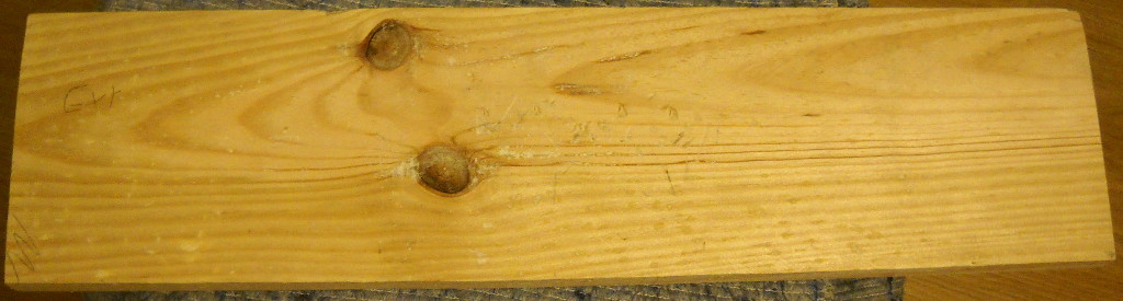 Problème: voir photos ci-dessous: j'ai coupé la planche en 4 morceaux de 600x150x22mm, et j'en ai un qui a deux gros noeuds qu ont l'(air vraiment très méchants, dur comme du béton, environ 15 à 30mm de diamètre suivant lequel on considère et de quel côté de la planche on regarde.