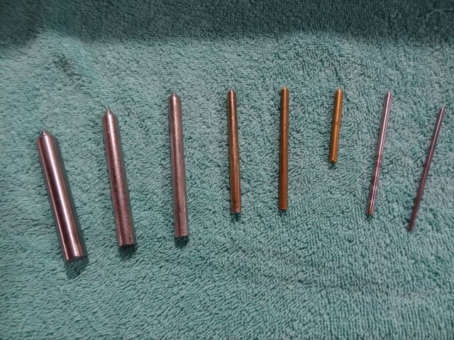 J'avais différentes chutes de métal (acier et laiton) et un ami m'a tourné des pointes.