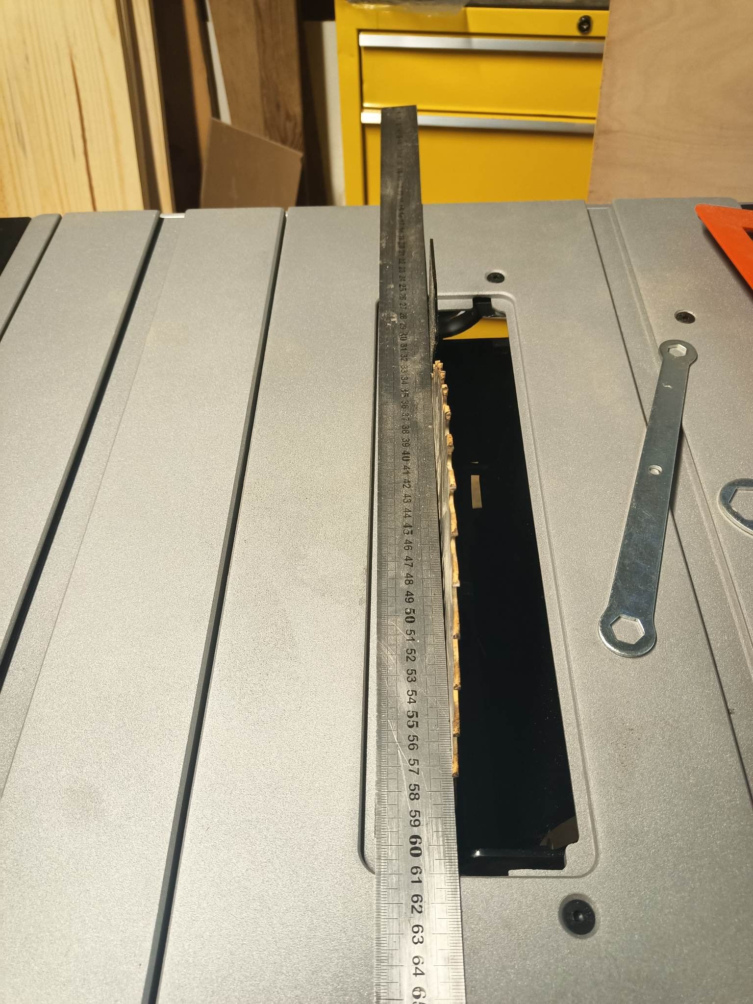 Il faudrait que je rectifie l'équerrage de la lame par rapport au plateau, mais je ne vais rien faire pour ça parce que je vais bientôt hériter d'un atelier équipé d'une vielle scie de qualité