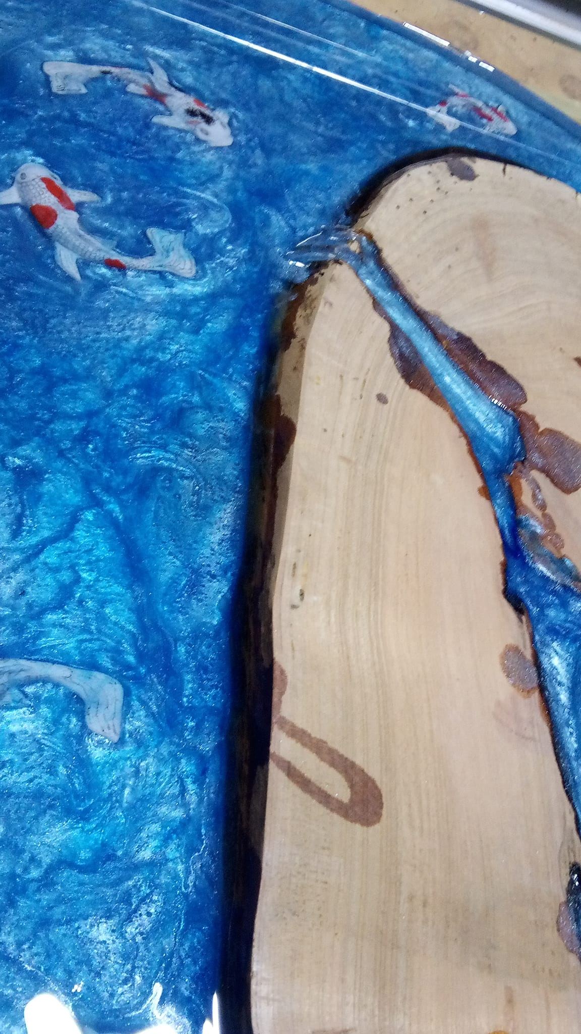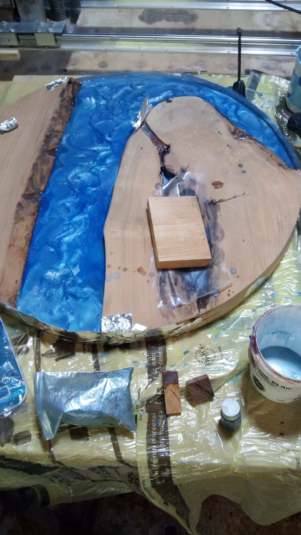 j'ai légèrement teinté la résine en bleu aprés coup pour donnée un effet de reflet on verra ce que cela donne