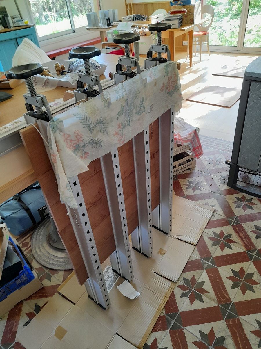 Idem pour régler les taquets du bas en fonction de la largeur du panneau à coller: faut compter les trous sans se tromper, et trouver le truc pour les désenclencher/réenclencher.