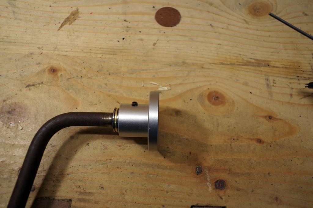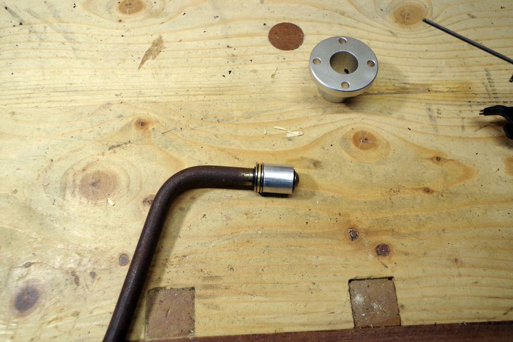 Et donc, c'est la partie mécanique de la poignée "champignon". L'ancienne était en plastique et tournait comme elle pouvait, c'était horrible What a Face. Elle a donc sauté et sera remplacée par tout ça, plus un chapeau en bois qui n'est pas encore fait.