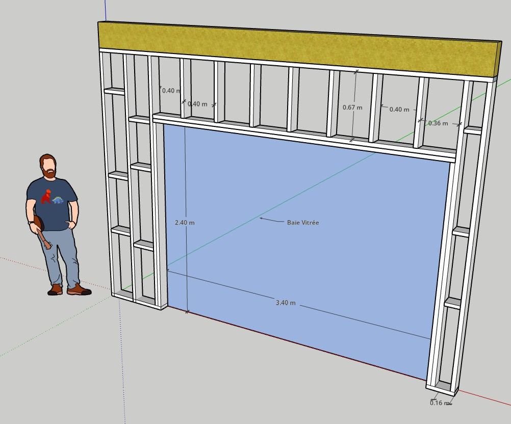 La dalle vient d'être coulée et je souhaite faire une ossature bois sur la seule partie ouverte en y intégrant une grande baie vitrée alu.
