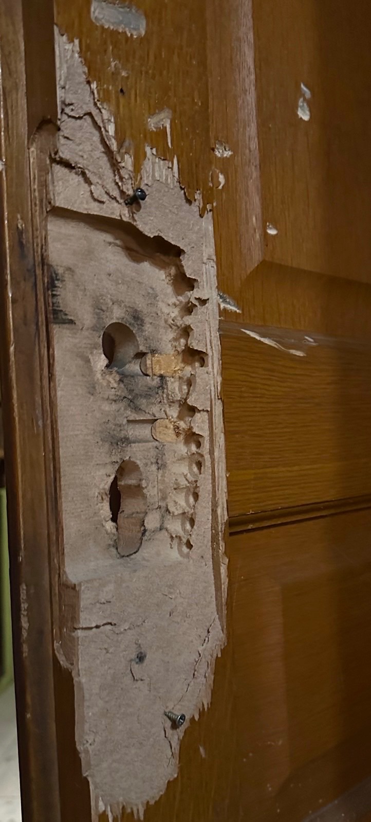 Sauf que c'est une porte en MDF avec un placage… ça plus la défonce pour le boîtier de serrure, ça va être chaud !