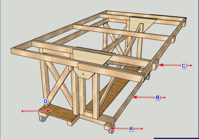 1 - Comme les roulettes sont très proches du bord pour avoir un max d'amplitude donc de stabilité en déplacement mode chariot, j'ai mis cette traverse pour consolider la base en prévision d'un choc possible en roulant qui pourrait tordre le support des roulettes jusqu'à éventuellement le casser.